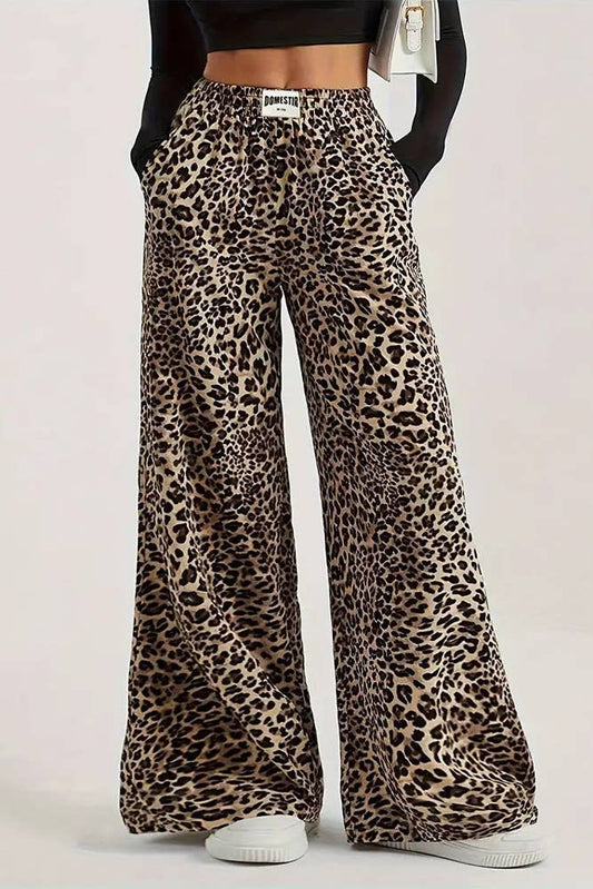 Brown Leopard High Waist Wide Leg Pants ZK2416