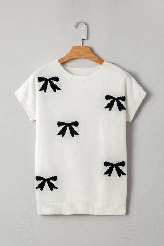 Bow Pattern Knit Short Sleeve Sweater