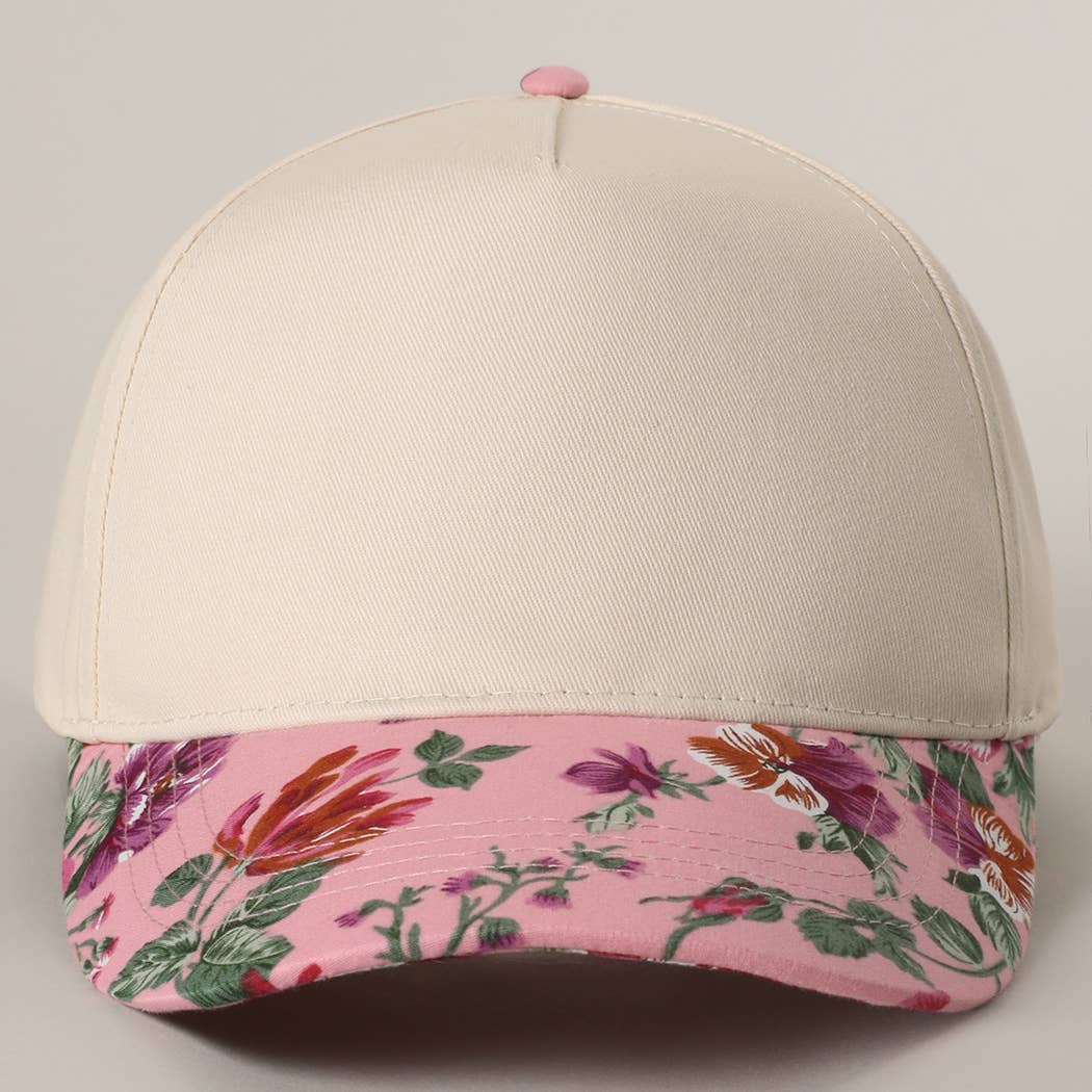 Flower Pattern Two-Tone Canvas Trucker Hat