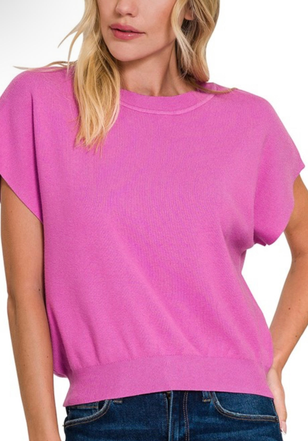 Round neck short sleeve sweater